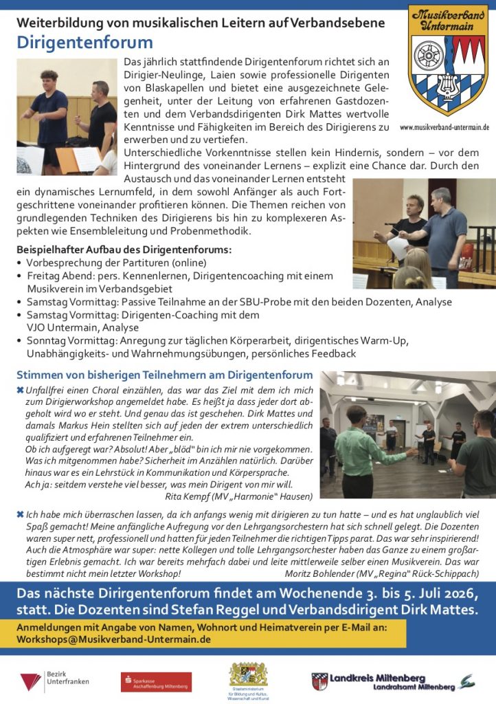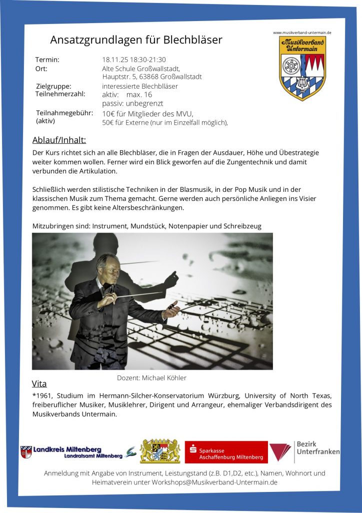 Man kam überein, dass ein solcher Workshop nur eine Grundlage sein kann. Für die fachgerechte Kursleitung erscheint jedoch eine Fortbildung, in Form eines mehrtägigen Seminars, sinnvoll, um auch gegenüber den Eltern eine entsprechende Qualifizierung nachweisen zu können. Seitens des Musikverbands Untermain soll darüber nachgedacht werden.